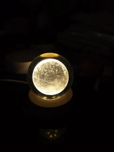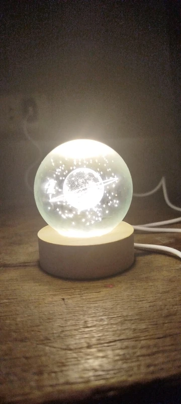 Our calming night light creates a low light, relaxing evening experience. Equipped with built in warm LED's which light up the incredible etched crystal planetary scenes